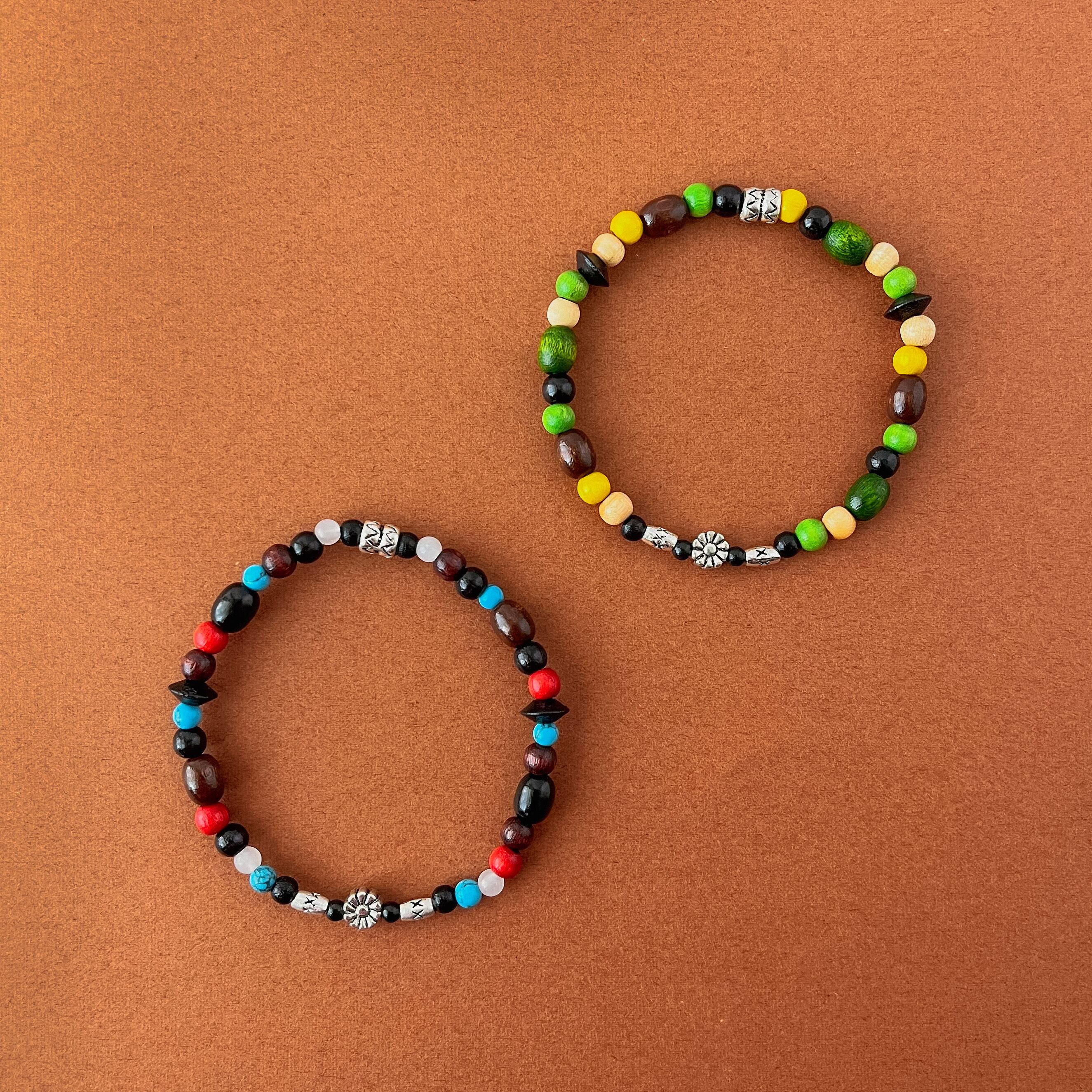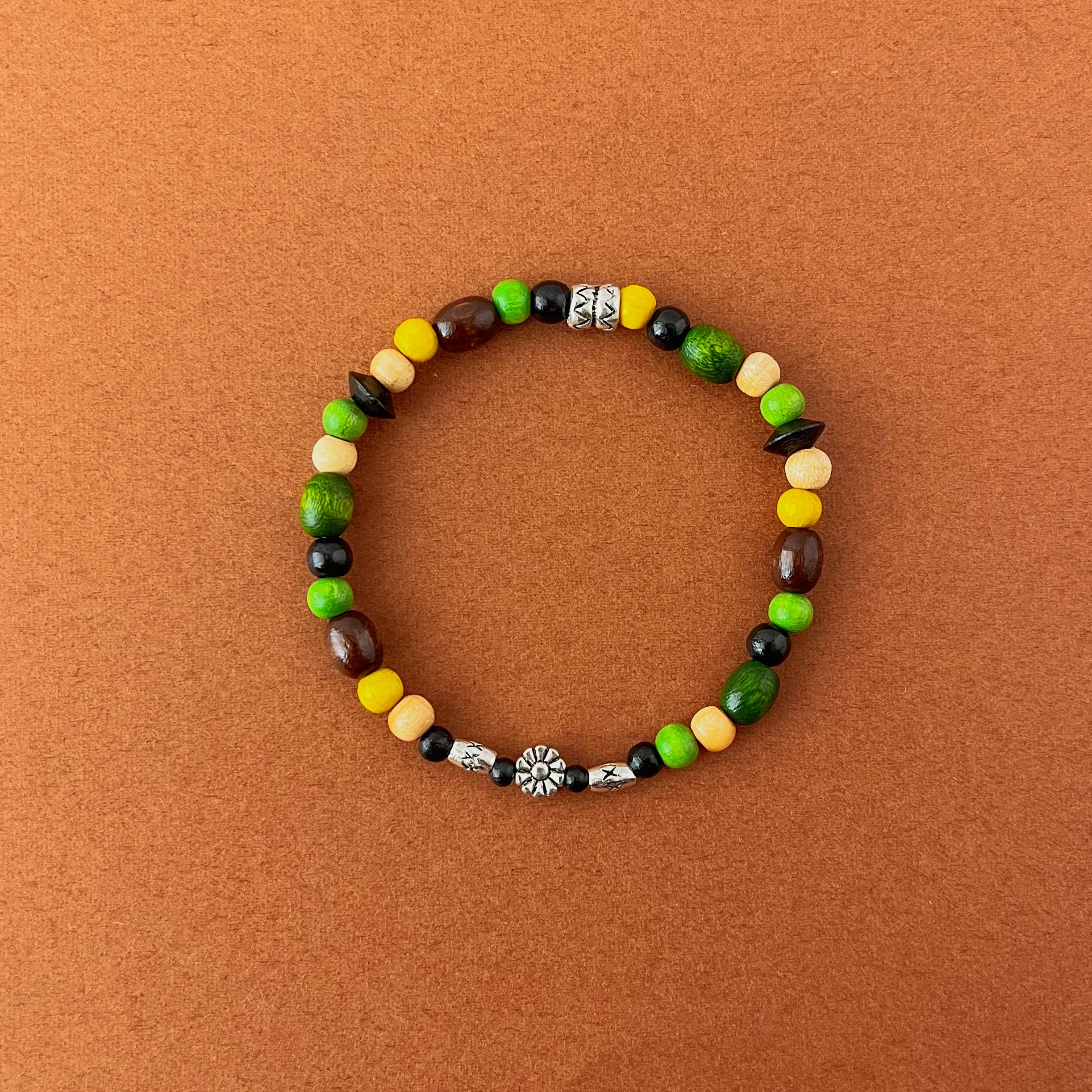 主に木製のビーズで作られたブレスレットですが、ストーン、ボーン等のビーズも含まれています。